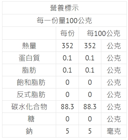 - 絕無摻雜任何澱粉類食品